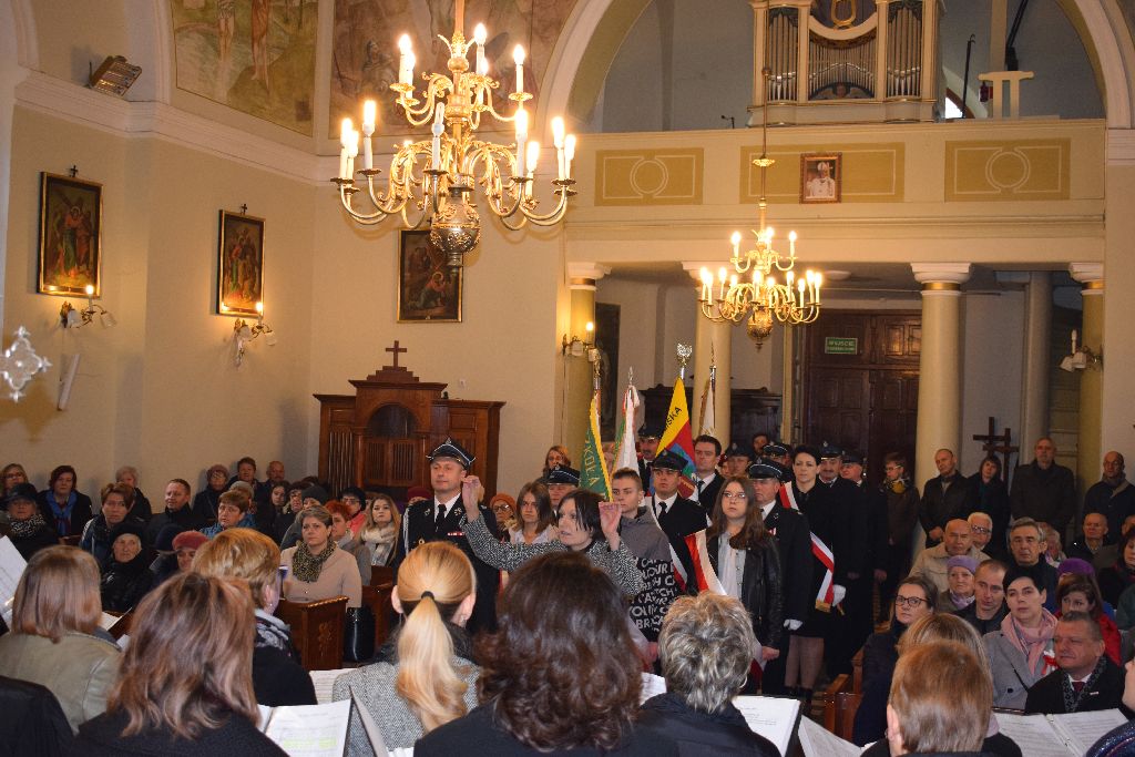 O godz. 11.00 w kościele parafialnym p.w. Św. Wawrzyńca w Karczmiskach rozpoczęła się koncelebrowana Msza Św. w intencji Ojczyzny, którą sprawował ks. proboszcz Ryszard Denys i ks. wikariusz Krzysztof Chruścicki. Liturgię i oprawę mszy uświetnił chór „Corda Cantando” pod dyrekcją p. Ewy Resztak. W homilii wygłoszonej przez ks. proboszcza, i w wystąpieniu p. Wójta Gminy ukazano tło historyczne oraz znaczenie odzyskania niepodległości przez naszych ojców i dziadów. Nie zabrakło odniesień i porównań historycznych do współczesnych czasów i rozumienia takich wartości jak patriotyzm, czy praca na rzecz „Małej Ojczyzny” i kraju. Ks. proboszcz i Wójt Gminy podziękowali organizatorom za przygotowanie uroczystości i „pięknej lekcji historii” w b.r., a wszystkim uczestnikom za obecność. Po Mszy Świętej odbył się koncert pieśni patriotycznych w wykonaniu chóru „Corda Cantando”.