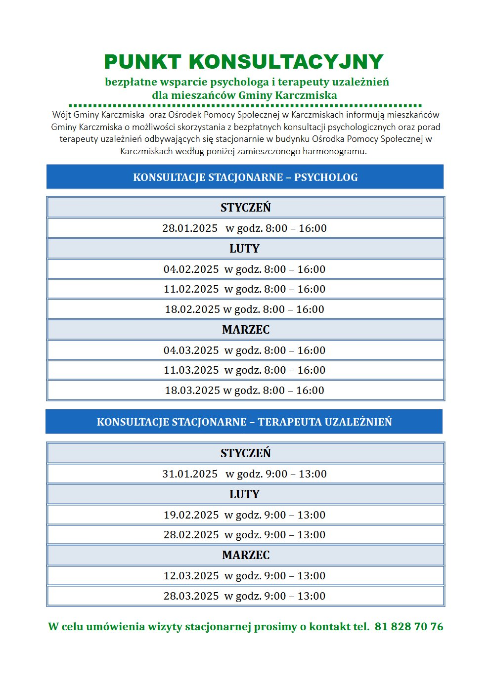 Wnioski powinny zostać złożone do 31 stycznia 2025 r. w Urzędzie Gminy w Karczmiskach, w pokoju nr 10 lub w sekretariacie.