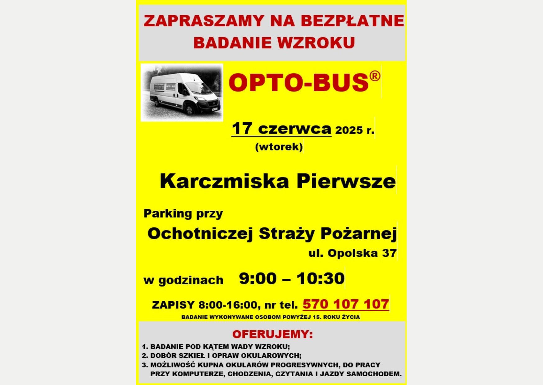 informujemy, że 17 czerwca br. (wtorek) będzie można skorzystać z bezpłatnego badania wzroku.