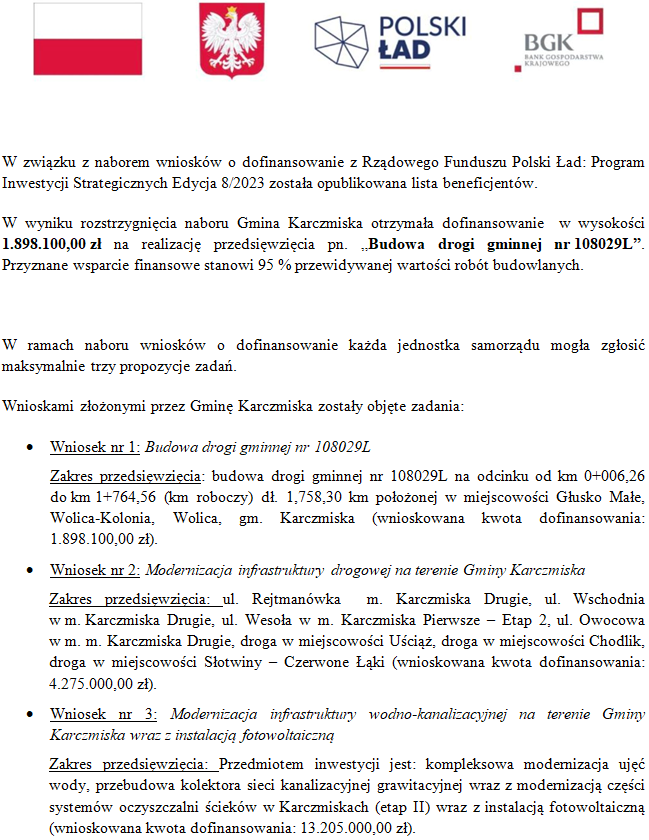 Nazwa zadania: „Budowa drogi gminnej nr 108038L ul. Wesoła w m. Karczmiska Drugie na odcinku od km 0+795,00 do km 1+220,00, dł. 0,425 km”