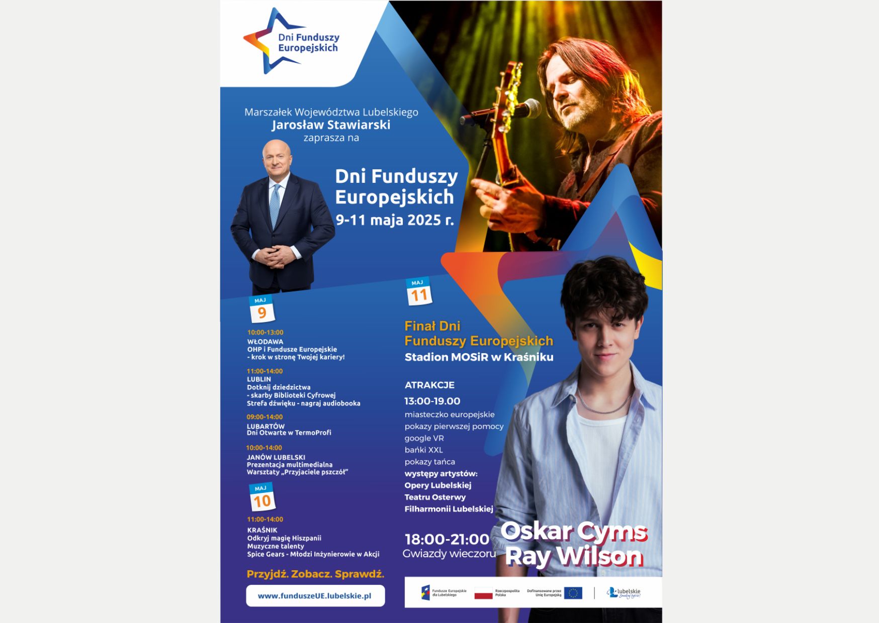 Marszałek Województwa Lubelskiego Jarosław Stawiarski zaprasza na Dni Funduszy Europejskich 9-11 maja 2025 r.