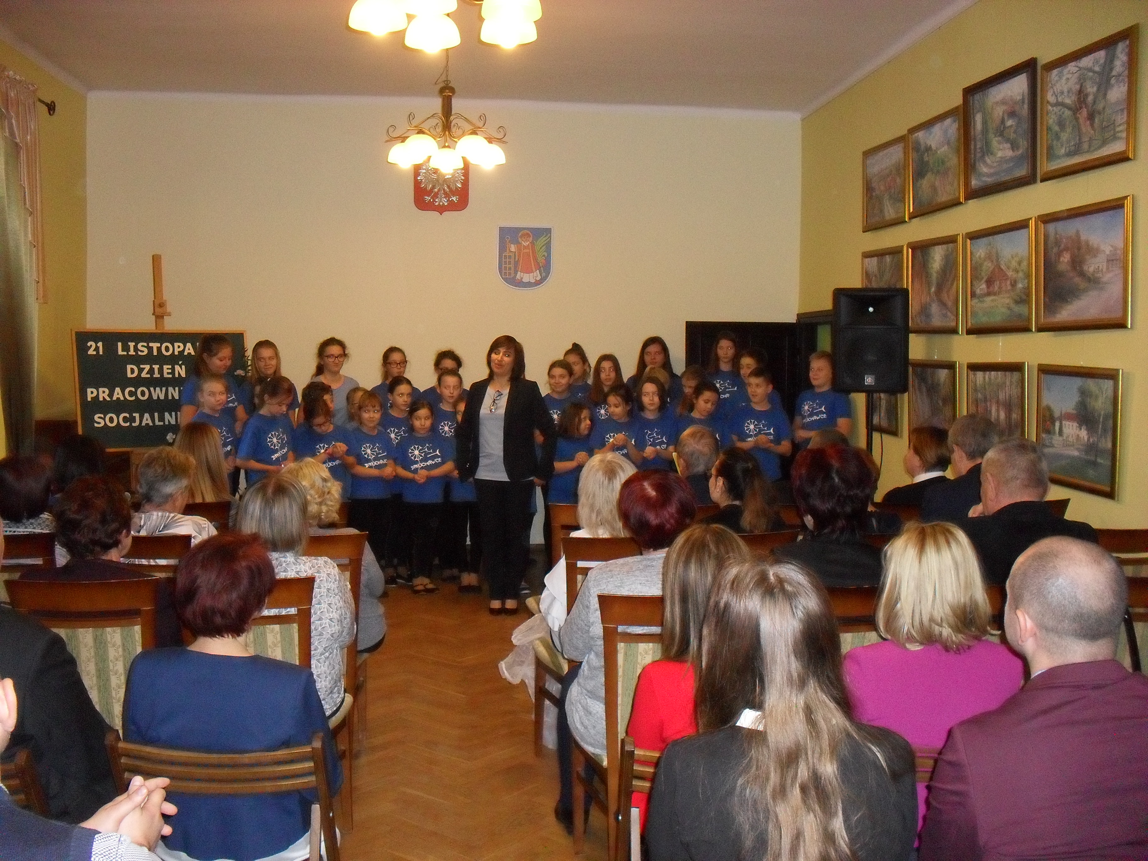 Uroczystość uświetnił występ dzieci z Zespołu Szkół w Karczmiskach z chóru ,,Dmuchawce” pod kierownictwem Anżeli Kwiatkowskiej. Spotkaniu towarzyszyły gratulacje i słowa uznania złożone dla wszystkich osób zaangażowanych w pomoc na rzecz potrzebujących mieszkańców Gminy Karczmiska. Pan Janusz Goliszek Wójt Gminy Karczmiska przekazał wszystkim pracownikom Ośrodka Pomocy Społecznej listy gratulacyjne.