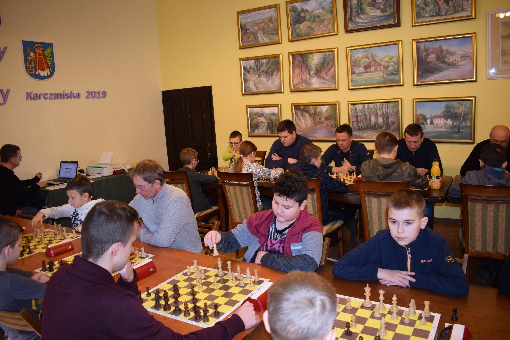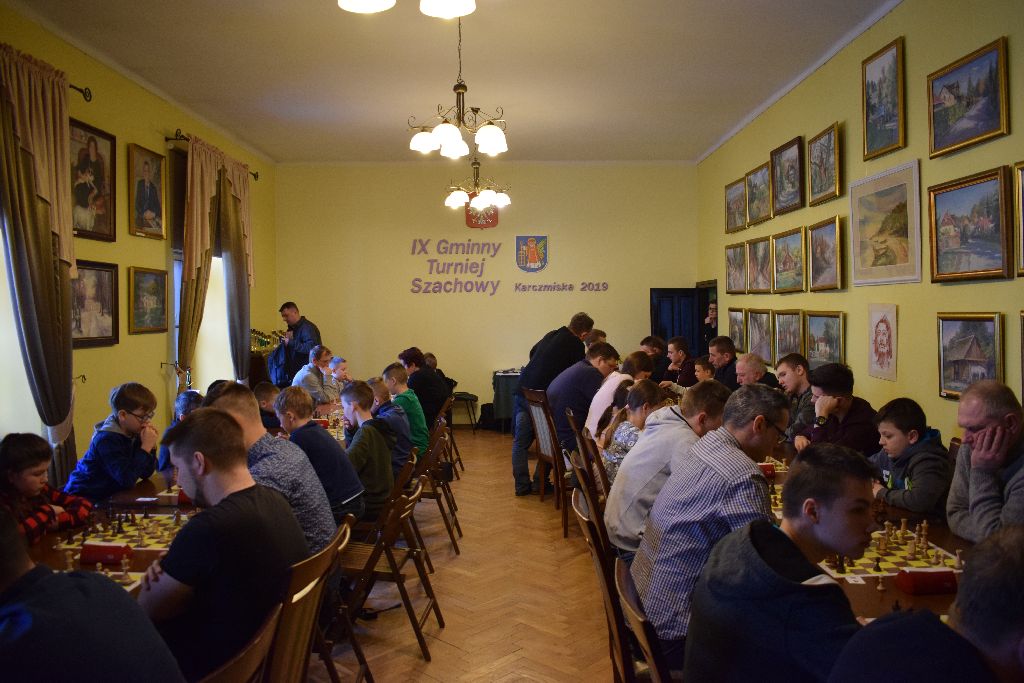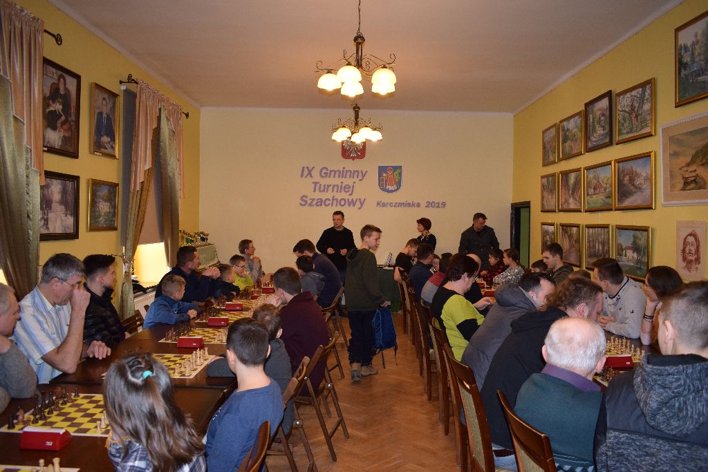 W sobotę 23 lutego 2019 roku w Gminnej Bibliotece i Domu Kultury w Karczmiskach odbył się IX Gminny Turniej Szachowy. W zmaganiach wzięło udział 46 zawodników w tym 15 zawodników z naszej gminy. Celem zawodów była popularyzacja sportu szachowego oraz umożliwienie zawodnikom podwyższenia kategorii szachowych. Turniej prowadzony był przez sędziego klasy międzynarodowej, mistrza FIDE Zbigniewa Pydę. System rozgrywek rozłożony został na 6 rund (system szwajcarski), każda runda trwała 30 minut.
