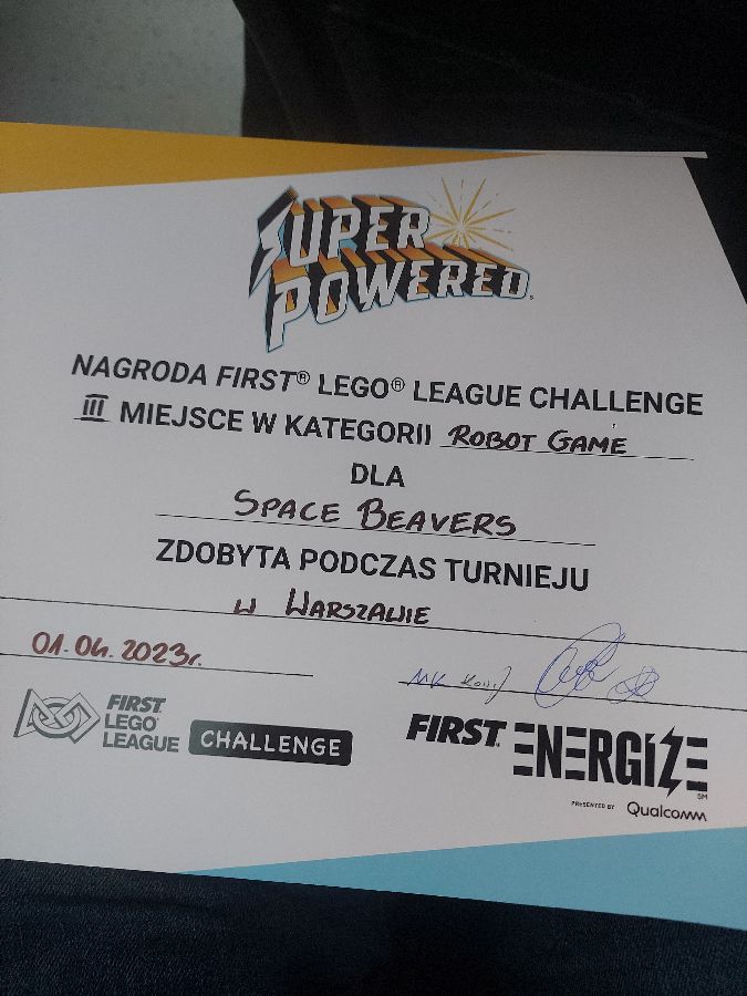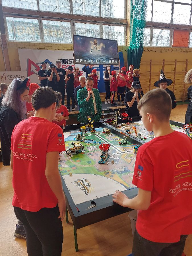 Młodziutka drużyna Space Beavers z ZS w Karczmiskach zakończyła właśnie Krajowy Robotyczny Turniej FLL, który odbył się w Warszawie. Znalazła się tam razem z 12 najlepszymi drużynami z całej Polski, wyłonionych wcześniej na eliminacjach Regionalnych spośród ponad 100 innych drużyn z całego kraju. Podczas Turnieju Space Beavers radzili sobie doskonale i zakwalifikowali się do ścisłego Półfinału, pokonując drużyny ze szkół średnich. Ostatecznie, ta najmłodsza drużyna na całym Turnieju, zdobyła III miejsce w kategorii Robot Game i tym sposobem zdobyła tytuł jednej z najlepszych drużyn Polski w przejeździe i wykonywaniu zadań turniejowych przez zbudowanego przez siebie robota.