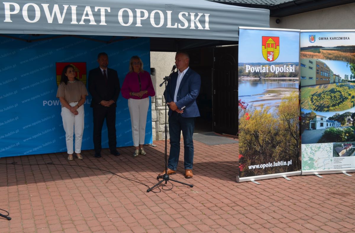 W uroczystości udział wzięli: Anna Baluch Poseł na Sejm RP, Marek Wojciechowski Wicemarszałek Województwa Lubelskiego, Dariusz Piotrowski Starosta Opolski oraz Alicja Bełcik Wójt Gminy Karczmiska, a także Radni Rady Gminy w Karczmiskach wraz z Przewodniczącym Rady Gminy Michałem Walencikiem, Radni Rady Powiatu w Opolu Lubelskim, sołtysi, prezesi OSP, Panie z Kół Gospodyń Wiejskich, mieszkańcy oraz wykonawcy inwestycji.