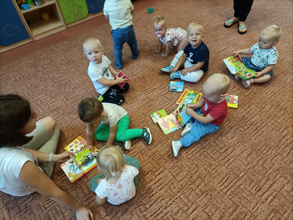 Nowy rok żłobkowy 2023/24 rozpoczął się adaptacją dzieci przychodzących po raz pierwszy do naszej placówki. 30 sierpnia dzieci wspólnie z rodzicami poznawały naszą placówkę oraz opiekunki, a następnego dnia dzieci już samodzielnie oswajały się z nowym miejscem. Od 1 września do żłobka zaczęło uczęszczać 45 dzieci, a w październiku dojdzie jeszcze dwoje maluchów. Dzieci podzielone są na sześć grup wiekowych:
