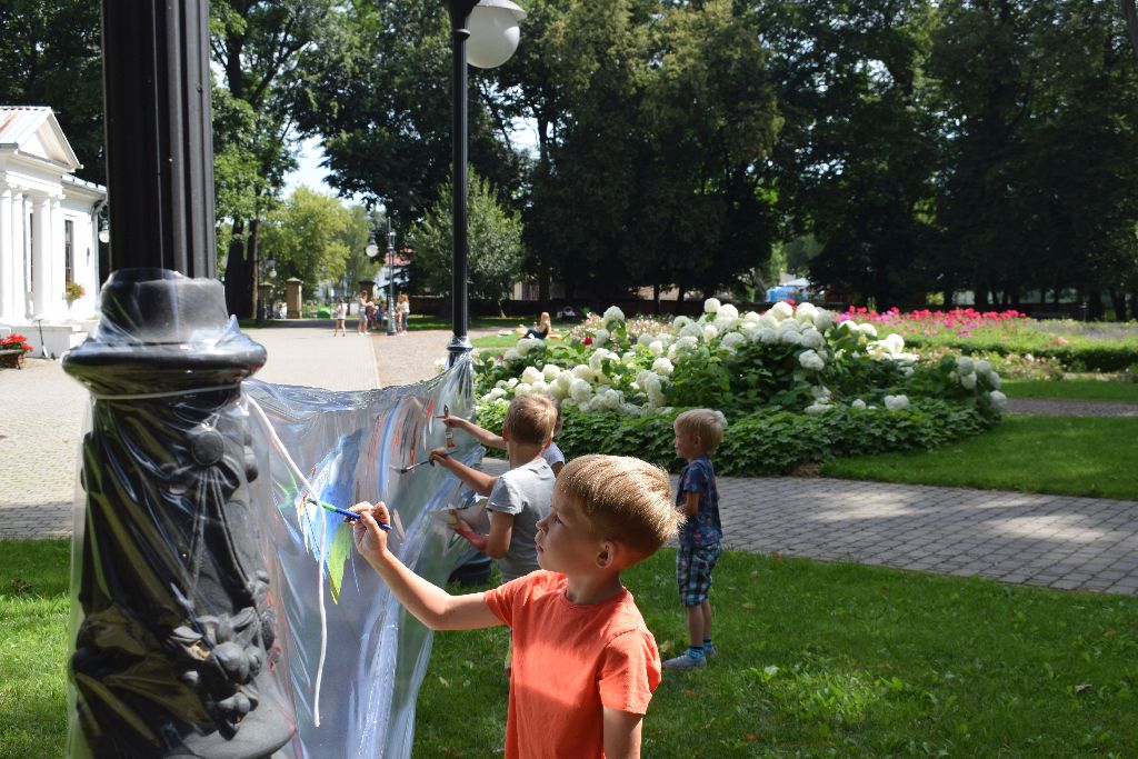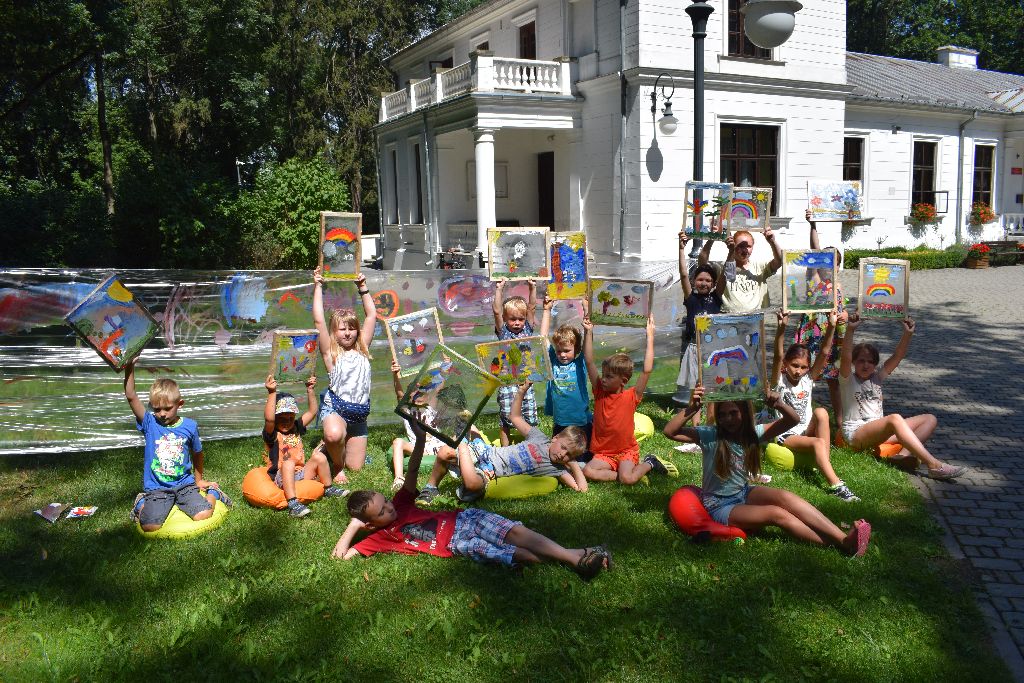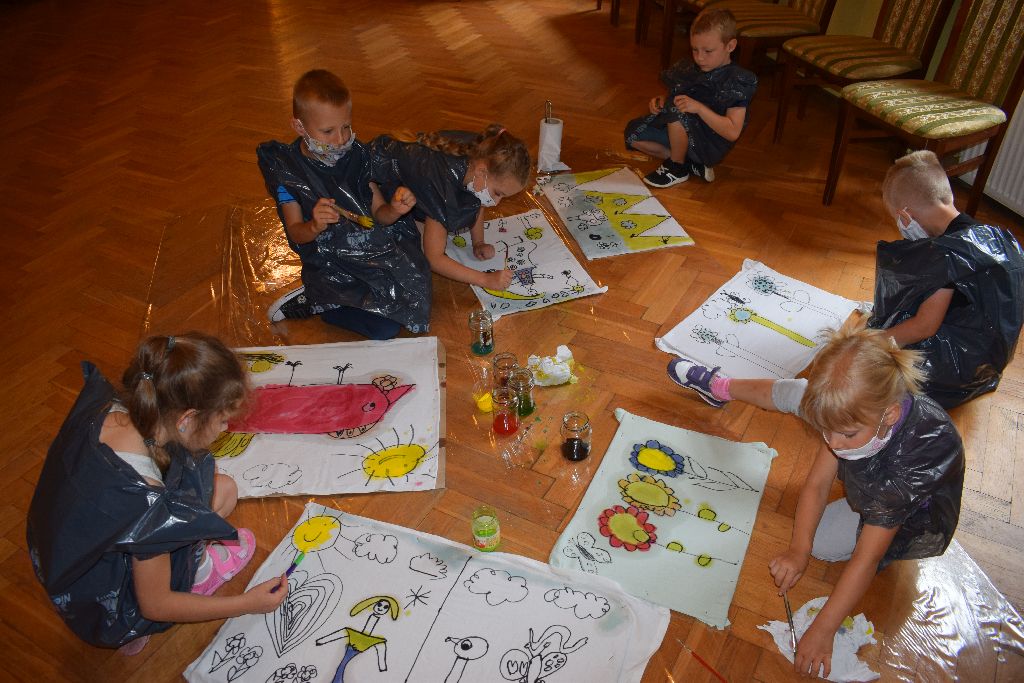 – zajęcia plastyczne: malowanie „witraży” na stretchu i malowanie na płótnie, prace dzieci zostały zaprezentowane w parku w „Galerii pod chmurką”,
