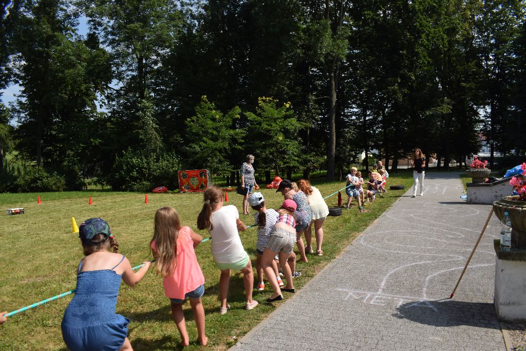 – gry i zabawy na świeżym powietrzu: rywalizacja dwóch drużyn w wielu konkurencjach m.in. przeciąganiu liny, strzałach na bramkę, toczeniu opony, gry w zaimprowizowane kręgle, skokach Gumisiów (wyścig na piłce z uszami), biegach przez płotki,