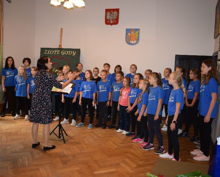 Uroczystość Złotych Godów uświetnił występ chóru Dmuchawce działającego przy Zespole Szkół w Karczmiskach pod kierownictwem Pani Anżeli Kwiatkowskiej.